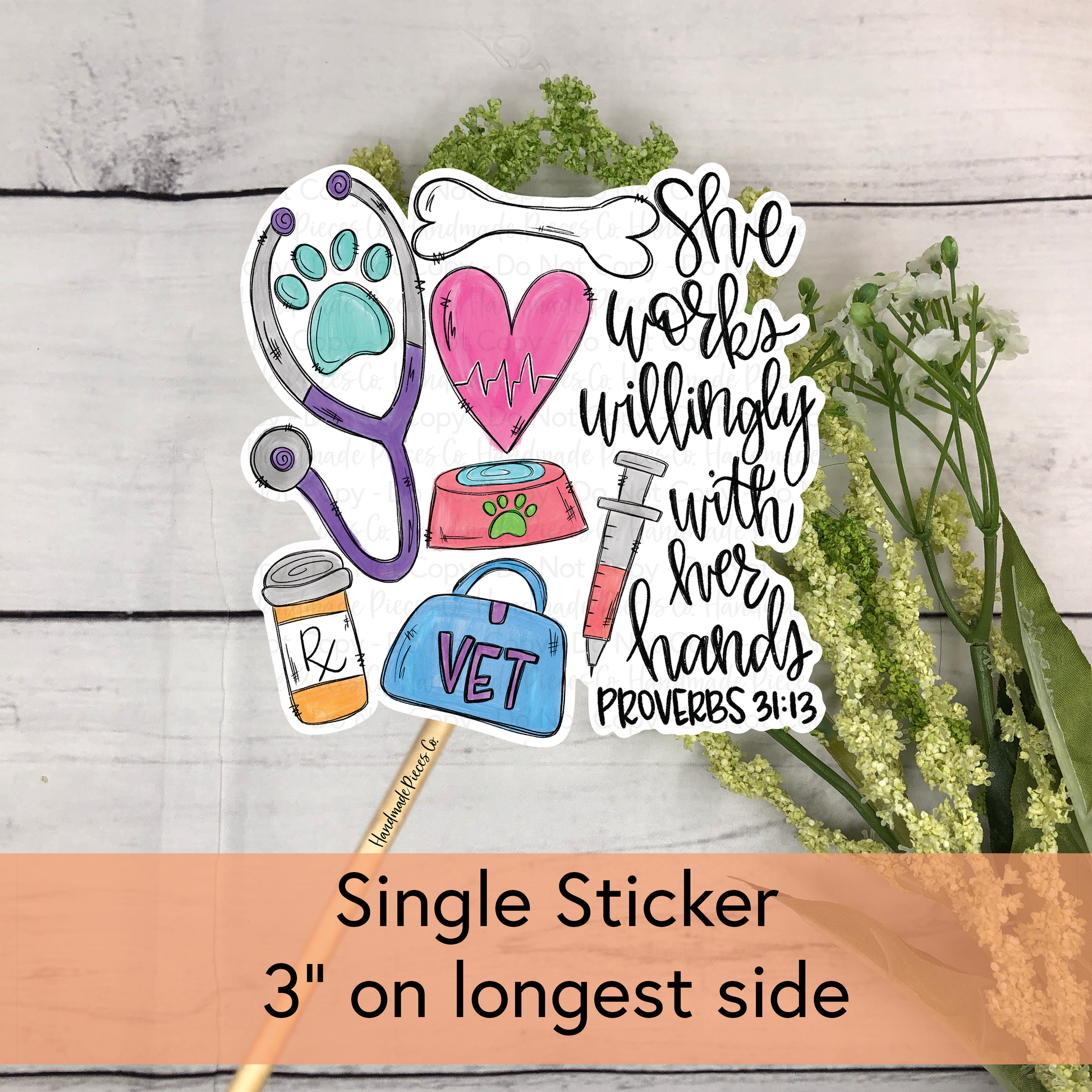 Veterinarian, She Works Willingly - Vinyl Sticker